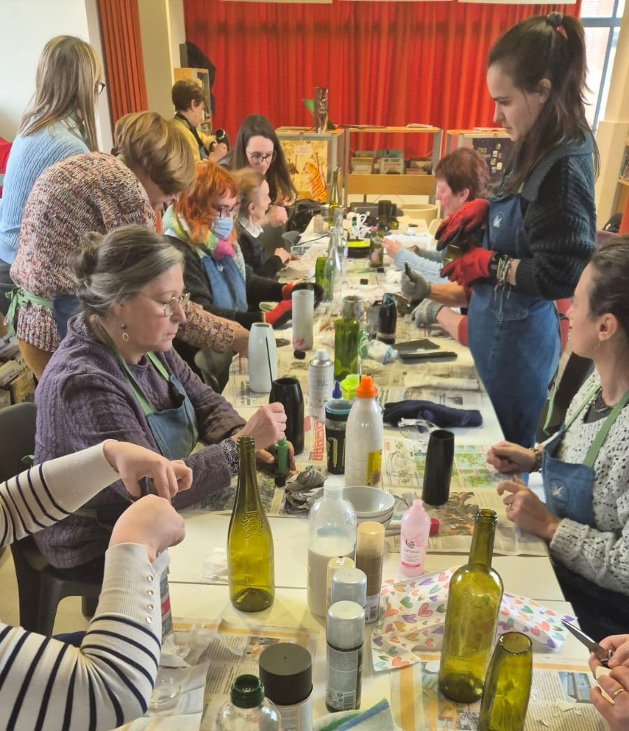 - Ateliers éco-créatifs et d’upcycling : transformation d’objets du quotidien en créations utiles ou décoratives.